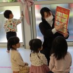 果物の名前に合わせてリズムをとりながらたたいたりもして、