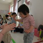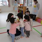 いつもは2歳児さんのお友達がやってくれるのですが、