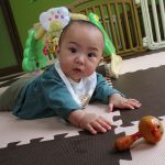 お昼寝から目覚めてからは、腹這いで遊んだり、