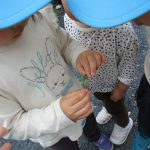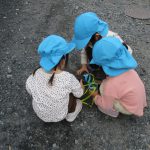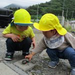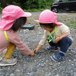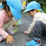 お友達と集まって遊んだり、石をよけて虫探しする