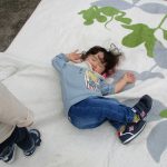 途中、ピクニックごっこをしてシートを敷き、