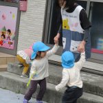 2歳児さんはみんなでつながって「汽車ポッポ」を