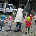 みのり組さんがのぞみさ組さんと手を繋いで畑まで連れて行ってくれました。