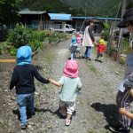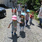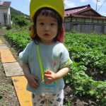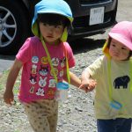 みのり組さんがのぞみさ組さんと手を繋いで畑まで連れて行ってくれました。