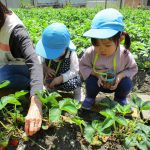 めばえ組さんの二人のお友だちも一緒に戸外に出ていちご摘みの様子を見たり、お花を見てきました☆
