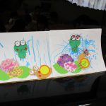 次はカエルにシールで目と口を貼りました!!