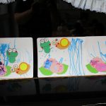 次はカエルにシールで目と口を貼りました!!