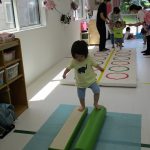 二本の平均台を渡ったり、並んだ輪っかを