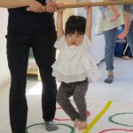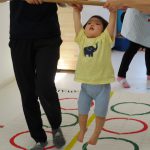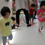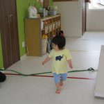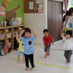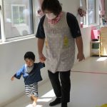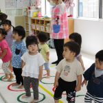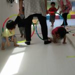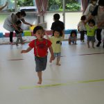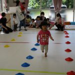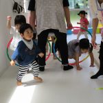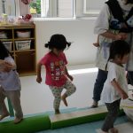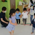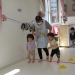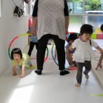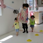 1歳児さんには難しかったので、先生と手をつないで