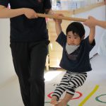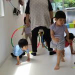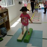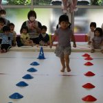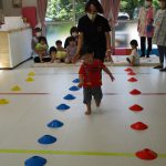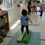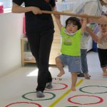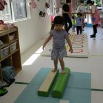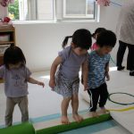 二本の平均台を渡ったり、並んだ輪っかを