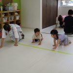 いもむしを体で表現して四つん這いで進んだり、