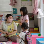 0歳児さんは少しだけ園庭に出て、外気浴も