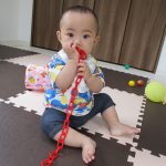 音の出る玩具がお気に入りの0歳児さんです(≧▽≦)