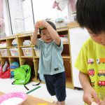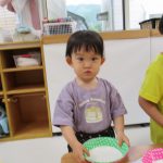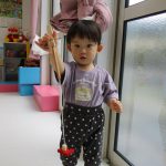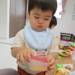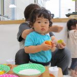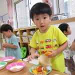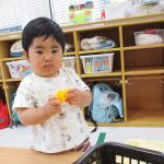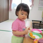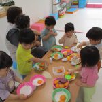 1・2歳児さんはお部屋でハンバーガー屋さんごっこと