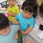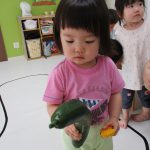 収穫してきた野菜を1歳児さんにも見せてくれました!!