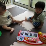 久しぶりに二人揃った0歳児さん、お休みしていた