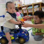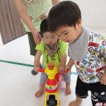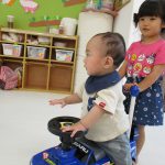 おやつの後は乗用玩具を出して遊びました!!