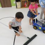 お掃除用具を持って一生懸命お掃除してくれました(^o^)