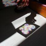 綺麗な光が床に写って、不思議そうに眺めながらも