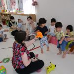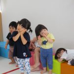 絵本に出てくる赤ちゃんと同じ格好をみんなも真似て