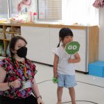 札を持って号令を掛けたいお友達はなっちゃん先生と