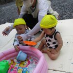 1歳児さんと0歳児さんはままごとやじょうろ、
