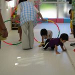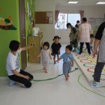 1歳児さんは苦戦しているお友達もいて、