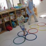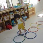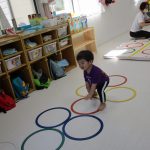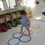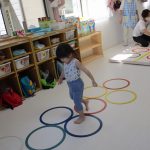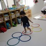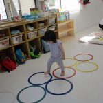 並んだ輪っかをグーグーパーで進んだり、
