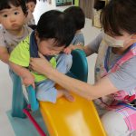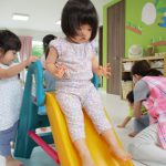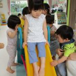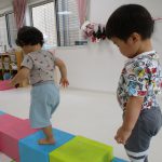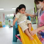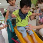 0・1歳児さんも目的のすべり台まで慎重に渡って