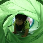 2歳児さんはみんなでハウスの中に入って楽しそうに
