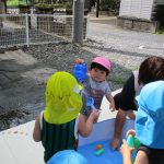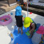 保護者の皆様には、水遊び道具の準備をして頂き、