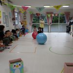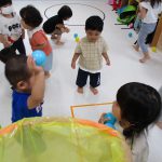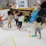 後半は、1・2歳児のお部屋に行き、ボール遊びに参加しましたよ(*^^)