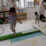 フラフープのトンネルをくぐって、平均台を乗り超えて、