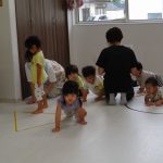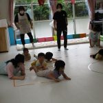 イモムシを体で表現して、四つん這いで進んだり、