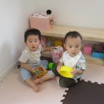遊んだり、ジッと座って玩具遊びをしたり、二人仲良く