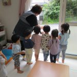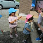 今日は0・1・2歳児さん、みんなで戸外遊びを