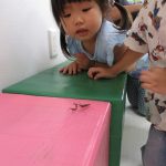 給食の後に先生がカマキリの赤ちゃんを見つけて