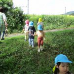 今日は0歳児さんも1・2歳児さんもお散歩に