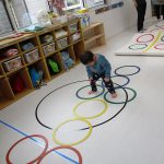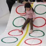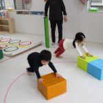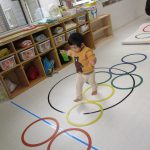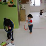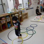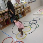 フラフープのトンネルをくぐり、平均台を乗り超えて、