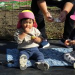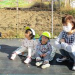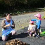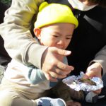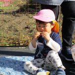 子ども達も焼き芋を見つけて、みんなでシートに座って