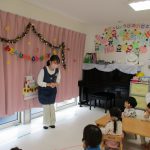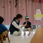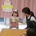 誕生児さんはみんなの前に出て、先生から紹介されたり