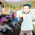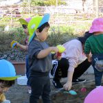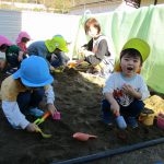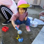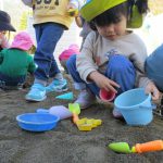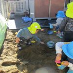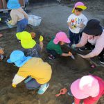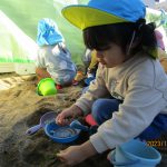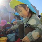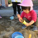 1・2歳児さんは戸外へ出て砂遊びをしました(*^_^*)