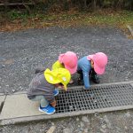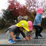 側溝を覗くのが好きなようで、じっくり中を見たり、石を入れて見たり…