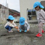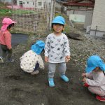 重ねたり地面を掘ってみたりと石の遊び方のアイデア豊富の子ども達です(^^♪