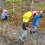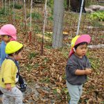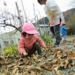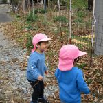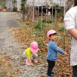 0歳児さんと1歳児さんは枯れ葉で遊ぶのにもハマって
