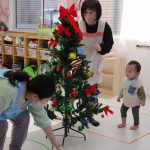 身体測定の後は0・1・2歳児さん、みんなでクリスマス