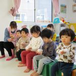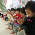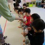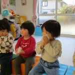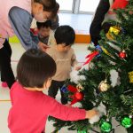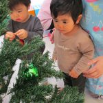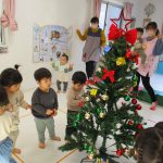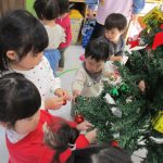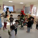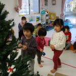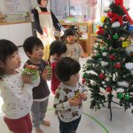 身体測定の後は0・1・2歳児さん、みんなでクリスマス