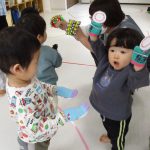 手作り靴下シンバルが大人気で、ほとんどのお友達が