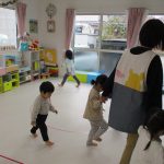 ジャンプしたり、「しあわせならてをたたこう」の歌を歌い、