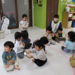 手作り楽器で演奏したり、リズム遊びをしたり、